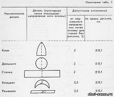 Расположение лекал по отношению к нитям основы материала приведено в табл. 5.
