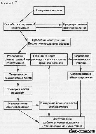 Разработку конструкций, технических условий и раскладку лекал осуществляют в последовательности, которая приведена на схеме 7.