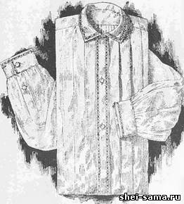 Мужская ночная рубашка шьётся из мадеполана или шертинга и украшается ручной вышивкой, которая выполняется красной бумагой или нелиняющим шёлком. Вместо вышивки можно использовать узорчатую тесьму.