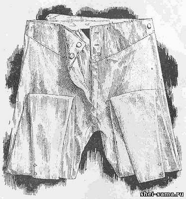 Мужские кальсоны шьются из полотна или мадеполана. Пояс застёгивается перламутровыми пуговицами.
