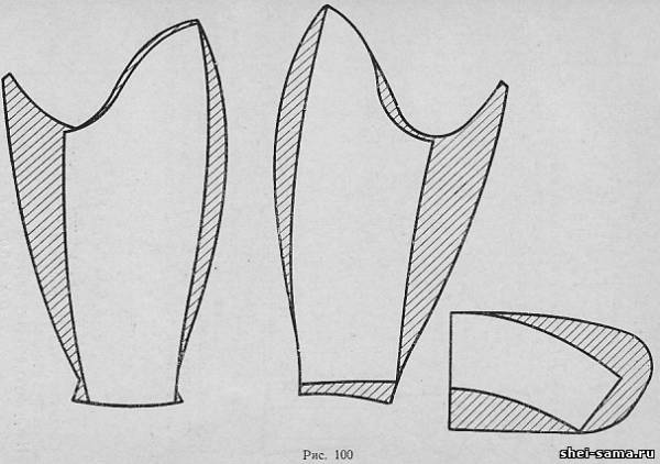 (рис. 95). При построении среднего среза спинки следует учесть частичный перевод сутюжки в середину спинки. При этом