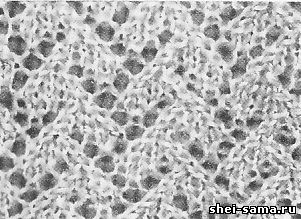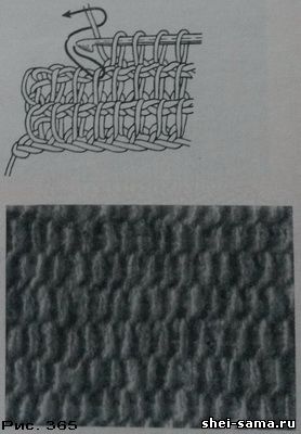 Для образца узора (рис. 364) набирают на спицы 23 петли (КП/7 + 2).