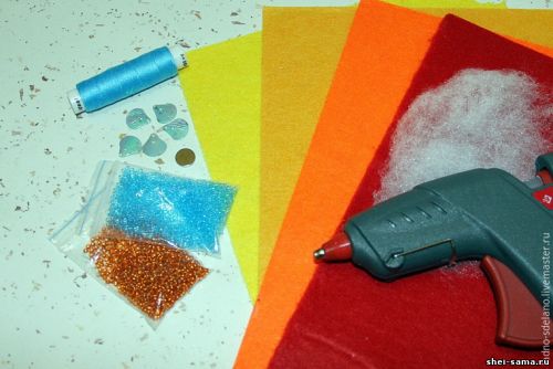 - Отрезки фетра оранжевого, красного, желтого и лимонного цветов.