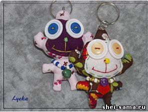 В статье будет рассказано как своими руками можно сделать уникальный брелок из текстиля. Идея создания таких изделий автор позаимствовала путешествуя по Таиланду. Там они очень популярны. Вся работа не займёт у вас более получаса. Изготавливается такое изделие очень быстро. Такие брелоки очень понравятся детям. По этому принципу можно сделать не только обезьянку, но и любое другое животное, рыбку или птичку.
