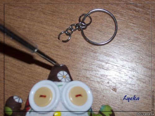 Сверху прикрепляем фурнитуру брелока, в виде колечка.
