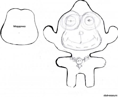 Зашиваем отверстие стежками. Делаем метки там, где у игрушки будет мордочка.