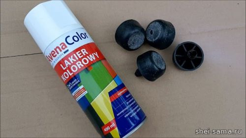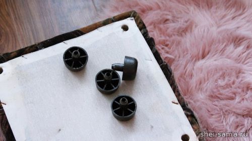 32. Одеваем уже окрашенные ножки пуфа.