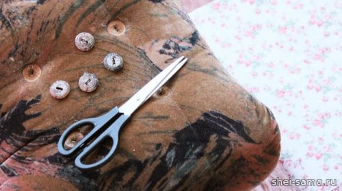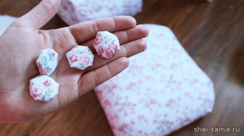 19. Подготовленные пуговицы можно прикрепить к пуфу.