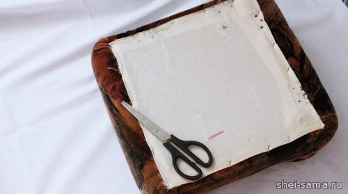 11. Отмеряем материал, необходимый для покрытия коробки пуфа.