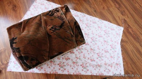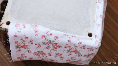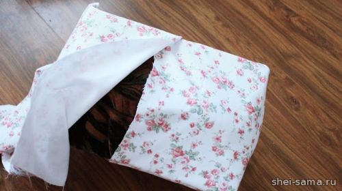 12. Чтобы закрыть коробку с пуфом, используйте два куска ткани (вы можете использовать один кусок, но выйдет больше сгибов).