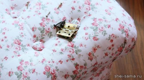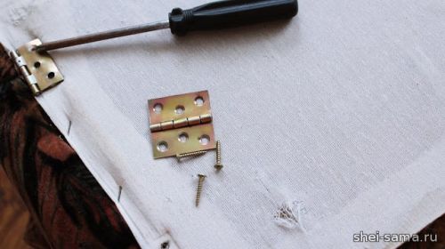 30. Прикрутите петли к крышке пуфа.