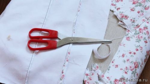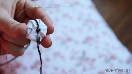 25. Затем закрепляем швы ткани и нитки для пуговиц.