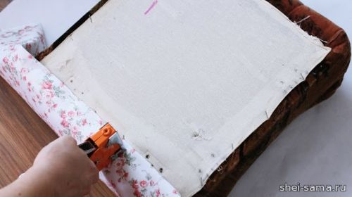 10. Хорошо натяните ткань за углы и закрепите при помощи скрепки.