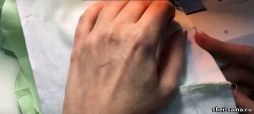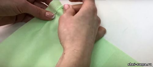 Дальше нужно сделать складочки на получившихся квадратах. Добавляем по четыре складки на все стороны квадратов. Можно воспользоваться булавками, закрепляем складки для большего удобства при шитье. От края квадратов нужно отступить 10 мм и равномерно распределяем складочки.