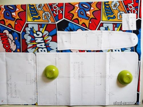 6. Отметьте места пришивания липучки на элементах, как показано на выкройке.