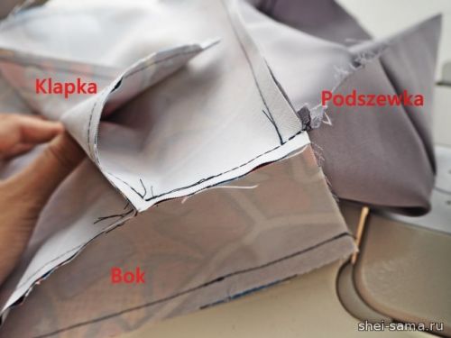 14. Сшейте элементы подкладки внизу и так же, как и внешнюю ткань, сшейте бока.