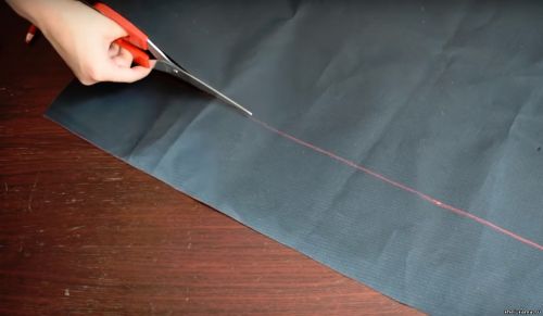Отмечаю на ткани ширину, прибавляя 2 сантиметра, а также длину, прибавляя 4 сантиметра на подгибание.