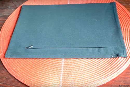 Сначала вшиваю молнию, а потом прошиваю весь конвертик, который у меня получился.