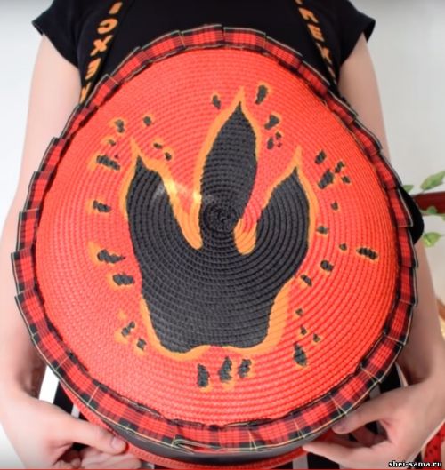 Беру акриловую матовую краску. В этом случае основные цвета у меня не по ткани, а именно для разных поверхностей. Теперь рисую отпечаток лапки Тирекса. По этой поверхности не очень удобно рисовать. Приходится краску хорошенько втирать в несколько слоев. Эта краска мне нравится больше, у нее нет этой липкости, как у акриловой краски по ткани, и еще она действительно матовая.