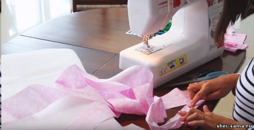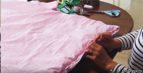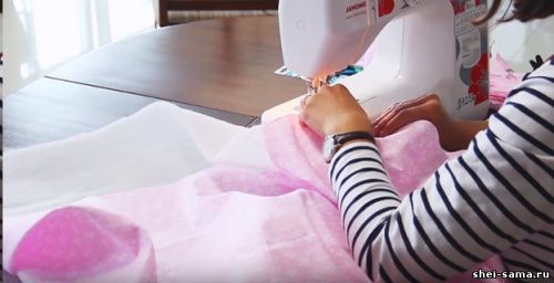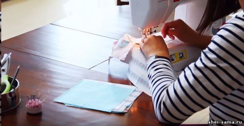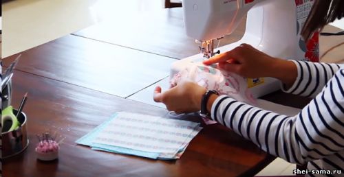 Изначально вы можете заколоть складочки булавками, чтобы вам было удобнее работать. Приступим к пошиву!