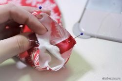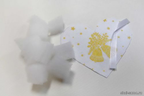 Затем, также используя отверстие, набейте сердечко ватным или наполнителем для подушек и мягких игрушек.