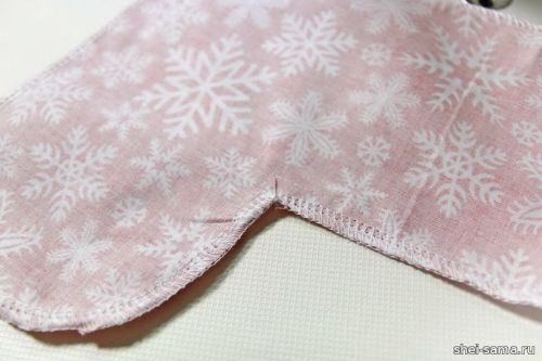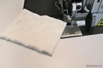 Сложите белый кусок пополам и прострочите его поверх оверлоком, затем обметайте один длинный край.