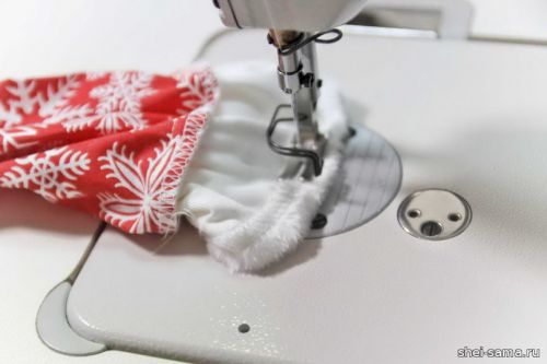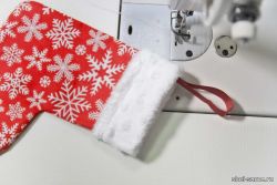 Нашиваем белую полоску поверх носка и наше украшение готово!