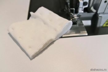 Сверните предварительно сшитый край белой ткани и прошейте его на машине.