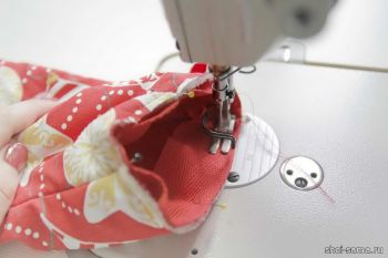 Выворачиваем рукавицу на лицевую сторону. Внутри у нас должна получиться подкладка без видимых швов. Заколите слои вокруг отверстия для рук и закрепите на машине.