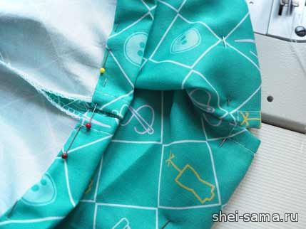 Подворачиваем ручки кверху и застрачиваем.