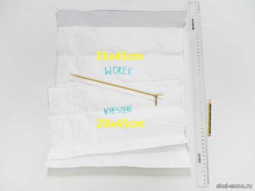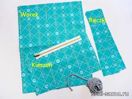 Вырезала все элементы - сумку, карман, лямки и небольшие полоски для завязки шнурка.