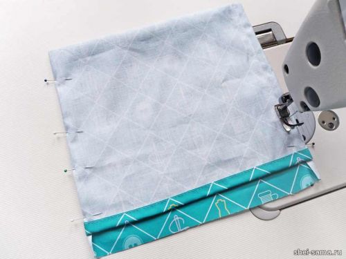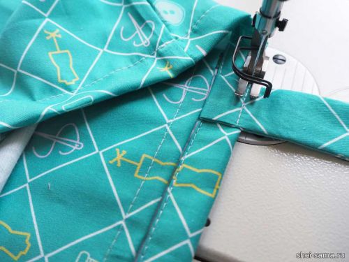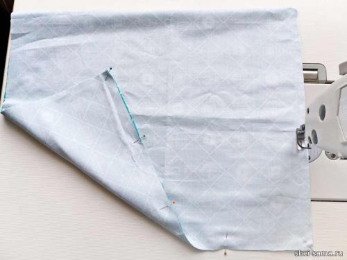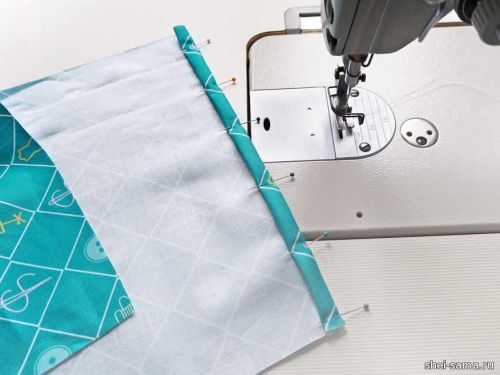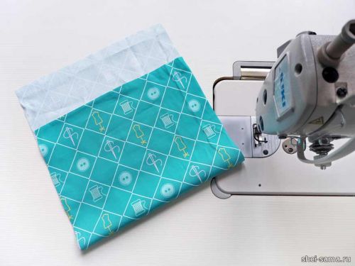Простегиваем 1 см, чтобы соединить все слои, но оставляем 4 см сверху для получения туннеля для шнура. Эти несколько сантиметров от верха предварительно обработаны оверлоком.
