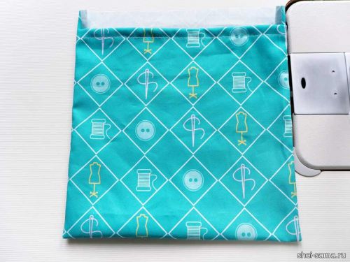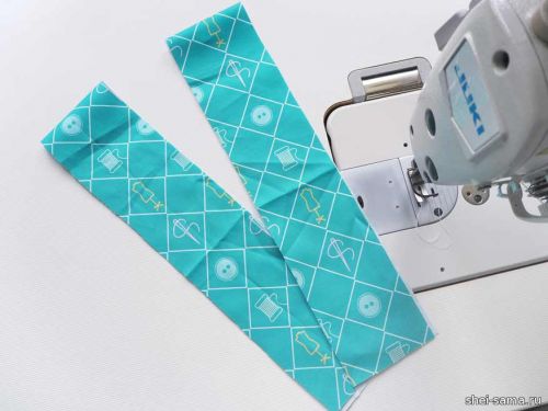 Сложите полоски внутрь и простегайте их, они обхватят шнурок внизу мешочка.