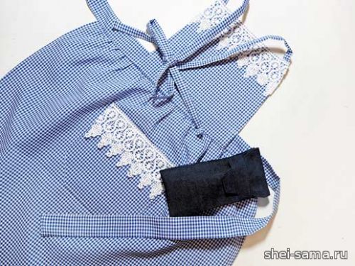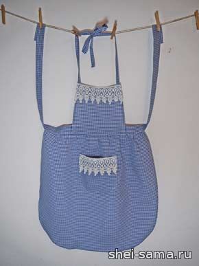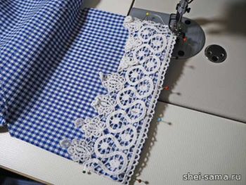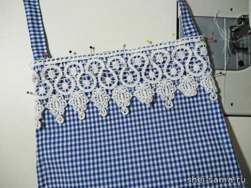 Нам еще предстоит пришить кружевной элемент сверху и фартук готов. Конечно, кружево можно использовать по-разному и шить где угодно. Я выбрала нежный орнамент, но его можно и помять, и пришить по всему низу.