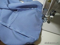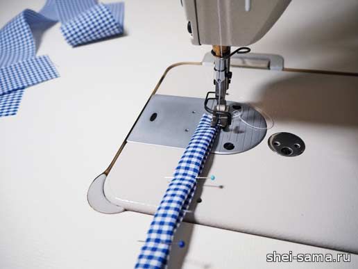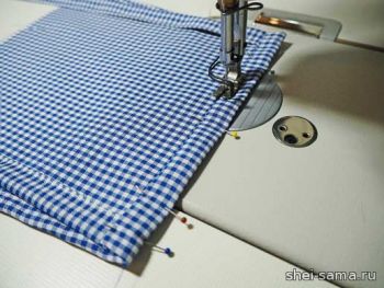 Все сшивается на машине, оставляя с одной стороны несколько сантиметров дырочку для сгиба. Обрезаем все уголки.