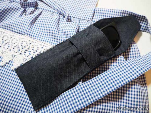 Ниже вы найдете пошаговую инструкцию, как сделать футляр для очков и фартук. Корпус я сделаю из более плотной джинсовой ткани, а фартук из клетчатой скатерти с добавлением хлопкового