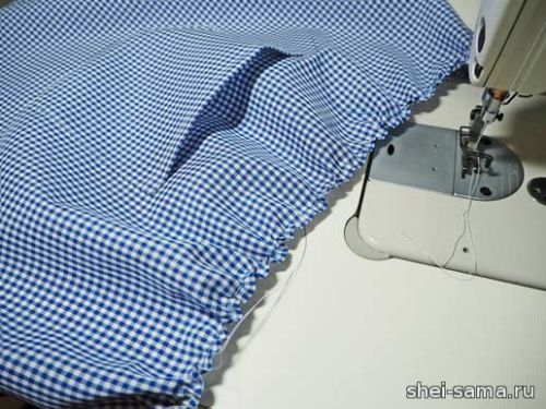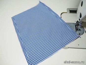 Пришло время сделать верх фартука. Вначале закатываю и прошиваю края.