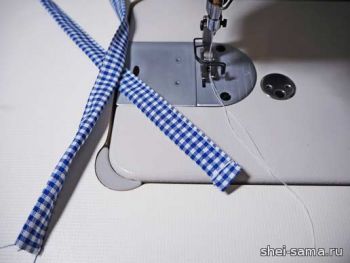 Пришиваю ремни, чтобы завязать их на концах, также закатываю верхний край.