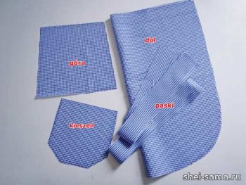 Вырезаем из ткани все элементы, не забывая отмечать их центры, чтобы нам было легче расположить и сшить позже. Вырежьте полоски по всей ширине ткани, разделите одну пополам, и это будет шейной лямкой, а другой - поясной.
