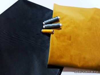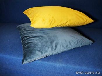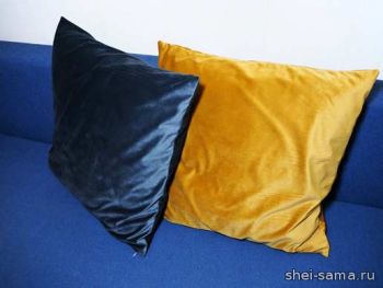 В нашем магазине представлен широкий выбор материалов, из которых можно изготовить такие наволочки. В этом проекте я выбрала насыщенный графитовый велюр и сочную горчицу. Они красиво смотрятся на фоне темно-синего дивана!