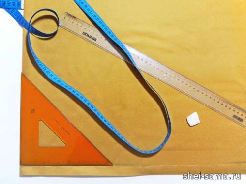 С помощью заданного угольника и линейки на сложенном материале рисую прямой угол, чтобы убедиться, что наволочка разрезана по прямой линии.