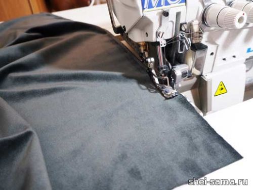 На домашней машине я меняю лапку для вшивания закрытых молний. Застежку-молнию прикалываю точно вправо к подшитому краю наволочки. Этот велюр представляет собой трикотажное полотно, поэтому не следует растягивать ткань, потому что она получится помятой.
