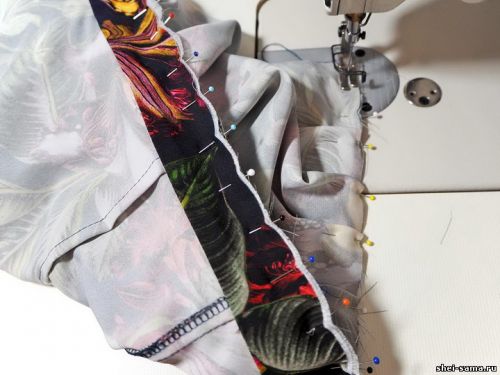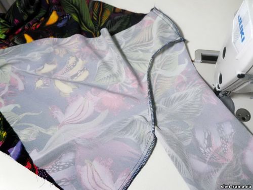 Шаг 4: Когда верх сшит, начинаем пришивать рукава. Прошиваем сначала шов, а потом обметываем оверлок.