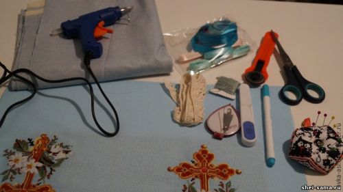 - атласная лента, иголка, нитки.