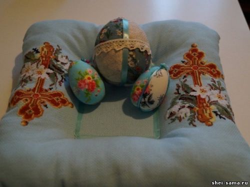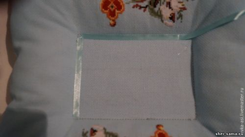 Шов центрального квадрата закрываем атласной лентой.